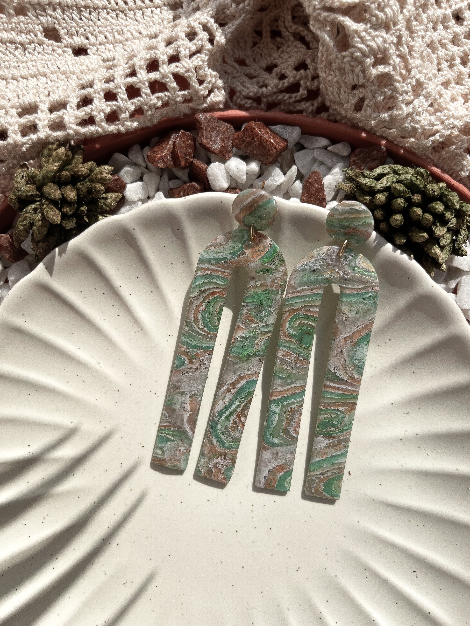 Sage | Agate marble earrings